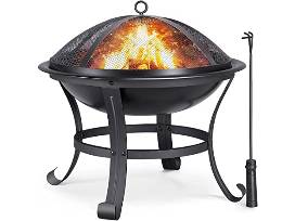 - Yaheetech 22-inch Outdoor Wood Burning Firepit with Steel Fire Bowl, Spark Screen Cover, Log Grate, Poker