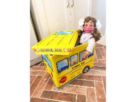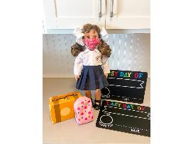 Surprise your child or grandchild with a truly one-of-a-kind gift: a custom SDEDS doll dressed just like them! This special item includes an 18" doll wearing an SDEDS uniform, face mask and a raincoat with matching rain boots. Also included with your purchase is one pair of black school shoes, a pink backpack containing an assortment of school accessories and a set of first/last day chalkboard signs, perfect for both your child and this special doll to use to commemorate their special school milestones. The doll accessories are neatly tucked within an adorable doll-sized suitcase. The doll and all included accessories will come speeding into your student's life inside a cute, convenient collapsible school bus box. The doll is compatible with most 18" clothes and accessories, including American Girl.