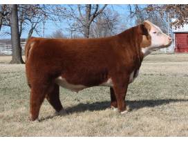 Just try to find a hole in this one! She's as fault free as any heifer we have ever raised and if you study her pedigree and the long list of Full Sibs that have won Major Shows its not surprising 065H is so good! She's got the most flawless structure and hip design as you can put in one, and her dark red color and extreme depth of body will always make this one a contender at every show she's at. When she's done on the tanbark she will continue the legacy of her breed leading dam and fill your pasture with the next generation of industry leaders! One of the Best to sell this year, here or anywhere!