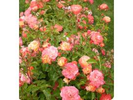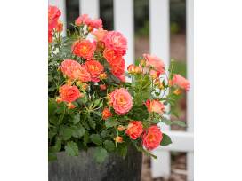 Incredible color, petite size, and incredible disease resistance - what more could you want from a rose? This everblooming gem has double blooms whose outer petals are dark pink changing to orange and finally to bright yellow at the center. The small, perfectly rounded form would make Coral Cove an outstanding informal hedge along a walkway or garden path. The color is so easy to combine it should have a place in every perennial border. Portland Rose Society Best Shrub Rose 2014. Full sun. Zones 4-9.