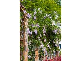 Blooming in June on new growth, individual flowers are borne on long showy racemes and open in a lovely shade of dark lavender before fading. Summer Cascade is a beautiful flowering vine that can easily cover an arbor or pergola, creating a cool, shady place. Producing an interesting seedpod in late summer, this vine has lovely multi-season interests and is more reliably cold hardy than other wisteria. Full sun. Thrives in zones 4-8.