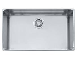 The Franke Kubus (model KBX11028) undermount sink features straight lines and tight radius corners for a fresh new aesthetic. The dimensions are 28 3/4" x 16 5/16" x 1/16. It is made of 18 gauge stainless steel and fits a minimum cabinet size of 33". Sound dampening pads in the sink minimize excessive sound. Designed and manufactured in Switzerland.