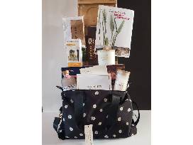 Luxurious spa collection includes $65 services at Evergreen's TallGrass Spa, Bamboo Bath Caddy, Bubble Bath, Lavender Chamomile Bath Fizzers, and Bath Pillow. Also Flat Iron, Lavender Foot Repair, Jade Roller, Clay & Mud Masks, and Magnolia & Peony Candle in an Alex + Olivia Duffel. TallGrass exp. 9-24-22.