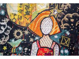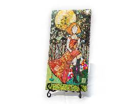 Bright colors and a flash of whimsy define this mixed media art piece. Measuring 8" x 16", this engaging artwork by local artist Deanna White brings joy and light to any room!