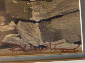 1Watercolor painting of feeding station (Irish Pig Pen) in Ireland by Phil Austin. Framed picture is 20" * 25". About the Artist: Phil Austin (1910 - 2004), an American Water Color Society member, was active/lived in Wisconsin, Illinois. Phil Austin was known for his watercolor landscape and marine paintings. He was also a teacher at Wheaton College from 1963 to 1970 and worked as a free-lance artist in Chicago from 1950 to 1966. Austin earned a BA degree from the University of Michigan in 1933. He was a member of the American Watercolor Society, the American Artists Professional League, and the Academic Artists Association. He was featured in the October, 1971 issue of "American Artist" magazine. Phil Austin died on February 12, 2004, at his home in Ellison Bay (Gills Rock), Wisconsin. Generously donated by the Helgren Family. Provenance Helgren Family.