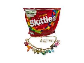 Here John Wind focused on the colors of the rainbow, scouring his archive for exactly the right hues and shapes. The result is the newest JW Collector's Necklace; The ROYGBIV and a bag of Skittles!