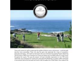 Ever dreamed of playing Pebble Beach - Here's your chance! This package for two is to attend and play in the 2019 Lexus Champions for Charity National Championship in Pebble Beach, California. The three day 54-hole event will allow you to play Pebble Beach, The Links at Spanish Bay and Spyglass Hill! Dates are December 8-12, 2021.