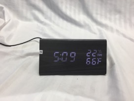 - Digital alarm clock with wooden electronic LED display, 3 alarm setting, humidity and temperature detection.