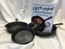 Package Includes: Cast Iron Skillet Set, Pot Holders, and Cast Iron Cookbook