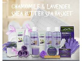 - Sensational Spa Goodies with Beloved Lavender Essential Oil & Roman Chamomile, nourish the skin & body and soothe the soul. Starting with Skin Reviving Hand Mitts, Back Scrubber, Brush, Pumice & Exfoliating Bath Pouf