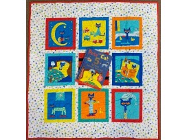 Bright and cheerful hand-made gender neutral baby quilt featuring Pete the Cat and includes a book of 5-Minute Pete the Cat Bedtime Stories! This duo is perfect for the small child or baby in your life!