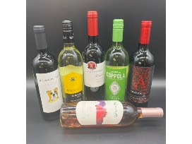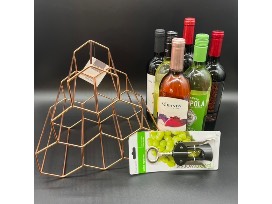 Includes 6 bottles of wine, tumbler, and wine opener!