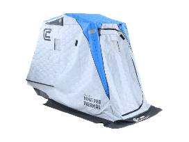 The Clam Fish Trap Series Shelter Kenai Pro Thermal Ice Team Edition is a true flip-and-go fishing shelter perfect for mobile ice anglers. Press play to learn about the features of the Kenai Pro. As a true flip-and-go fish trap, The Kenai Pro Thermal is the perfect shelter for ice anglers who are hole hopping and like the comfort of a shelter. This lightweight shelter is a favorite for many anglers because of the deeper tub for more storage and for sitting up higher. The Ice Team Kenai Pro Thermal features an Ice Team thermal shelter tent and includes a light bar, battery bracket, and a travel cover as accessories so anglers and their ice shelter will be ready to hit the ice this winter.Features:Super-tough 900 total denier fabricFull thermal skin90 grams of insulation per square meterIncludes hammock for gear storageAdjustable folding seat that slides front-to-backFront access door