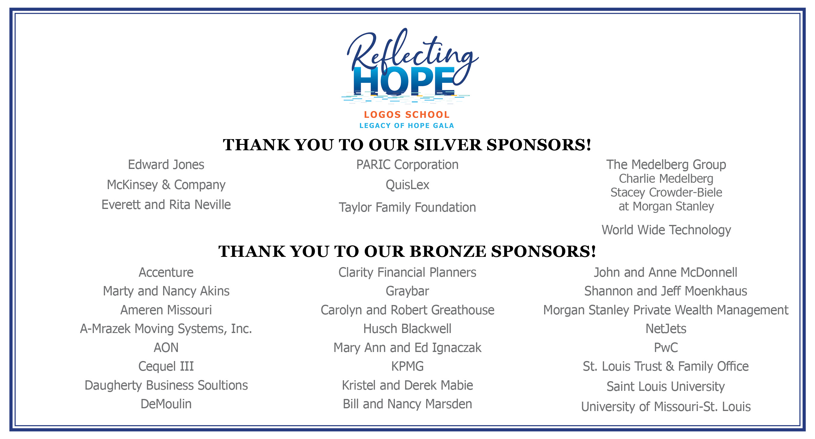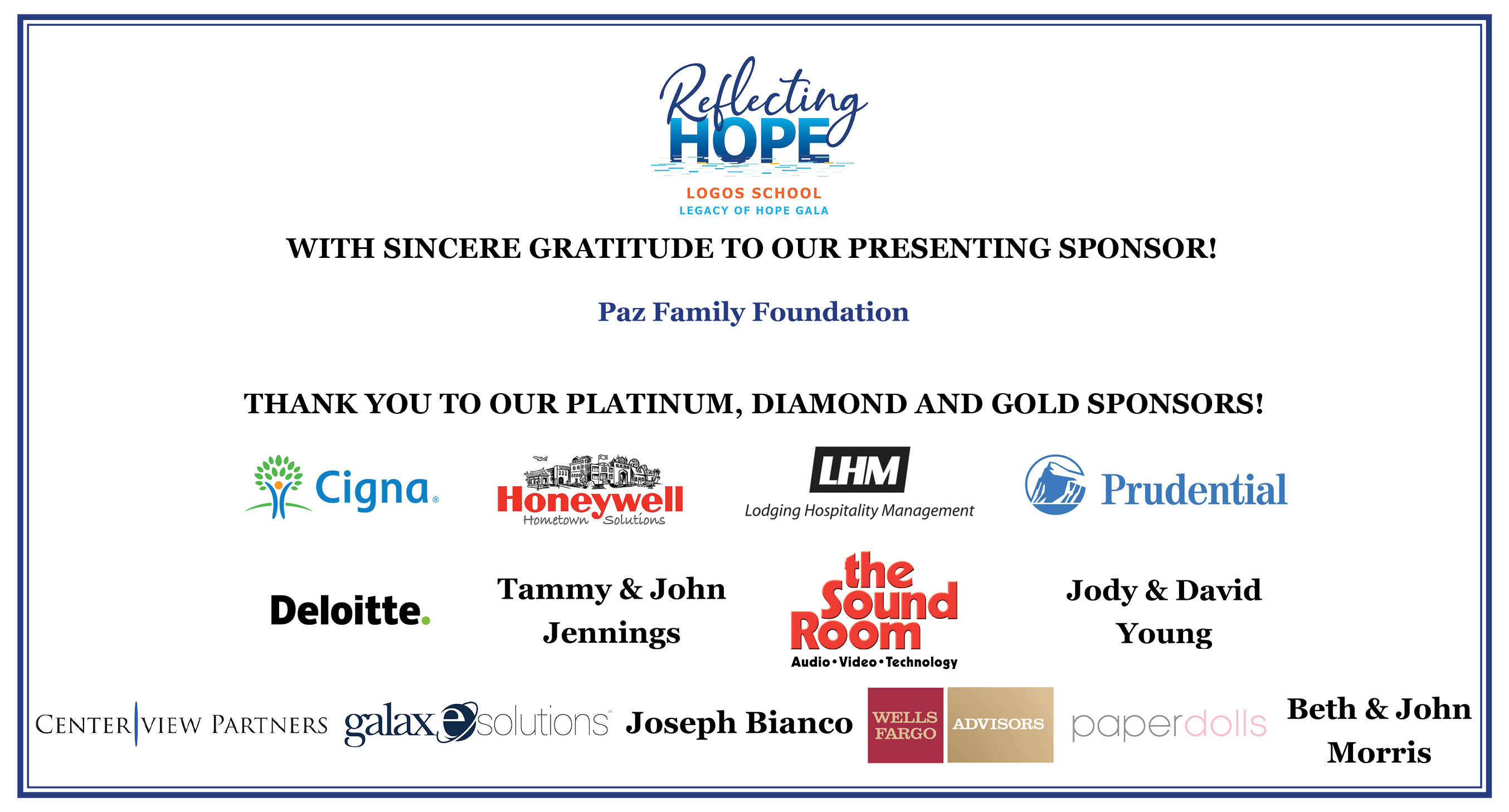 Your support of LOGOS is a reflection of hope and belief in every student to find their way and realize their full potential. Thank you for participating in our 2021 LOGOS School Legacy of Hope Gala, a celebration of the transformative power of hope!