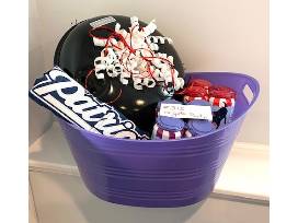 Calling all tailgaters! We've got a 14 inch Cuisinart Grill just waiting for hot dogs. Along with it is a case of Par Tee canned vodka and rum drinks from AstraLuna Brands, and a Patriots bomber-style jacket.