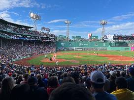 See a weekend Red Sox game from your seats in Section 17, Row 2, Seats 11 and 12. These are Grandstand seats near home plate on the first base side. The view from the seats is shown in the photo. This is for a Saturday or Sunday game only, date by mutual agreement with the donor of the tickets.