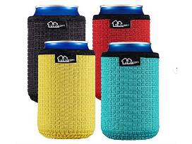 - 4 can cooler sleeves from WK IEASON. These are non-slip, 16 ounce, neoprene, in Black, Red, Yellow, and Blue