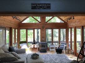 - The Relaxation Room has three walls of windows for amazing views, a cozy love seat, plush sink-your-toes into rug, an egg hanging chair and a pellet stove -this relaxation room is the perfect place to relax, watch the sunrise, do some yoga, read a book or just take a nap during those rainy days or chilly nights.