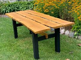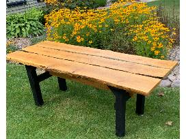 The ash hardwood tabletop has a durable finish added for long-lasting protection from the elements. Table legs are also milled from Ozaukee ash, and finished in flat black. Each table leg may be adjusted for leveling.