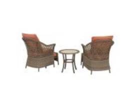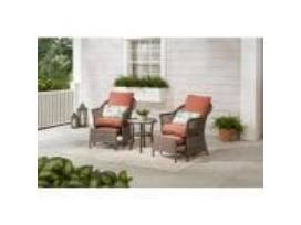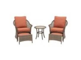The Hampton Bay Valley Spring woven 5-pieces set would make a great addition to any patio. The set includes two lounge chairs, two ottomans, and a round table. Comes with Sienna Red cushions. This set is made of a sturdy steel frame and all weather wicker to withstand all the elements and provide ample seating.