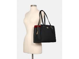This Coach Tatum Carryall has a black exterior with a red interior, and includes the following great features: