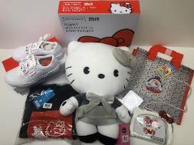 This Hello Kitty Gift Set Includes a retro 12" Hello Kitty doll, Hello Kitty x Puma sneakers (W Size 6.5), Hello Kitty Floaty Bow, Hello Kitty Beaded Purse Toy, and Hello Kitty Hoodie (Adult XL)