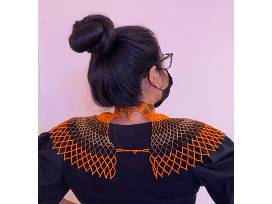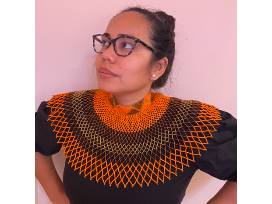 Orange, Brown, and Gold African Zulu, Ndebele, Xhosa beaded collar - shoulder lenght. Adjustable from 12"-14" neck circumference