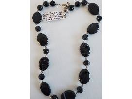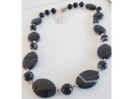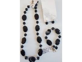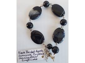 Enjoy this beautiful Black Banded Agate with Swarovski crystals and sterling silver components set complete with a necklace, bracelet and earrings.