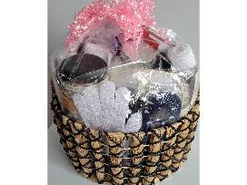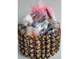 This basket is jammed packed with everything you could need for the perfect spa day. Oversized bath towel, hair products, Dr. Teals foaming bubble bath, aromatherapy candles, pedicure kit, nail polish, bath bombs, cosmetic organizer, eye & face masks, face peels, jars of Q-tips, cotton balls, LBrie Products, body scrubs, lotions, chocolate and MORE!!