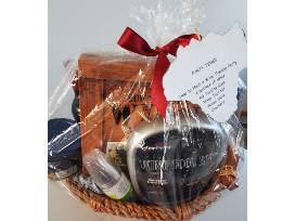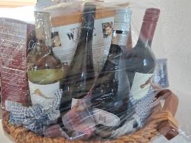 Part Time! This basket is filled with all the supplies needed to host wine tasting party including 4 bottles of wine, 40 tasting cups, wine tool kit, mixed nuts and 2 packages of crackers.
