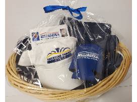 Enjoy this basket filled with gear including an American Family field cap, Brewers t shirt and zip up.