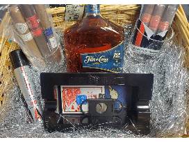 Enjoy a night with the guys with this basket filled with assorted cigars, cigar accessories, poker set, tumblers and a bottle of rum.