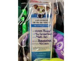 From The Groom Shack comes a delightful basket filled with toys, treats and other dog accessories as well as a $60 gift certificate towards grooming.