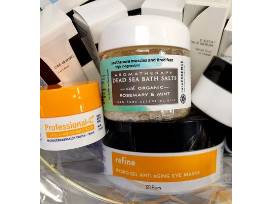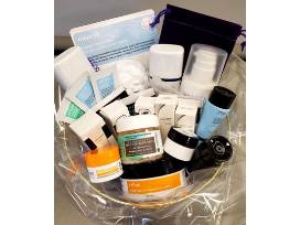 From Massage Envy - a basket full of skincare items and a $65 gift card.