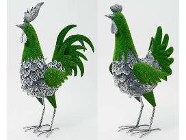 The faux moss detailed rooster and hen are ready to invite guests to your home. These decorative pieces indoors or in a covered outdoor display.