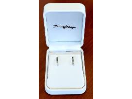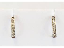 14k white gold diamond earrings. Each earring has 7 diamonds that are channel set. Posts are friction posts with white gold backs.