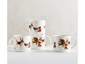 - Collection of 4 howliday mugs representing a variety of canine friends from Pottery Barn