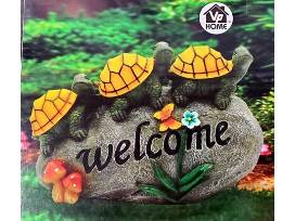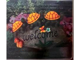 - Polyresin "Welcome" Solar Light - equipped with solar panel to charge battery; easy to install.