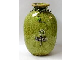 - Gorgeous green vase decorated with green wire, beads and a dragonfly charm