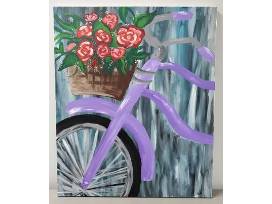 "Biking Through Spring" - acrylic on canvas by local artist Natalie Moussa
