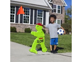 Mark outdoor safety zones for your child's play space with the friendly Step2 KidAlert! This Visual Warning Signal (V.W.S.) has a bright neon green color, vibrant red cap and reflectors, and an orange flag. The bright coloring of this fun character signal is a visual alert to nearby drivers to slow down in designated areas. Whether at home, camping, or near playgrounds, set up the KidAlert! to remind drivers to use extra caution in the area.