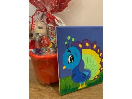 Fun filled basket with fidget toys galore! A perfect gift for any child, this basket has multiple pop toys, sensory toys, beanie baby pug dog, bracelet and bucket! Paired with a sweet Baby Peacock Canvas Print, perfect for the playroom.