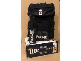 Enjoy a cold beer with your new Miller Lite backpack cooler with a case of 16-ounce Miller Lites and 6 tallboy can koozies.