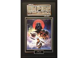 Custom designed collage - limited edition. Framed with Star Wars The Empire Strikes Back logo. Double laser-cut in the matting of the frame in silver on black background. Museum quality. Framed dimensions: 24" x 38". Includes certificate of authenticity and officially licensed holograms.