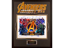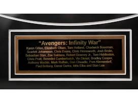 This item comes custom designed with the Avengers: Infinity War logo double-laser cut into the matting in gold on the black background. Museum quality. Framed dimensions: 28" x 34". Includes certificate of authenticity and officially licensed holograms.