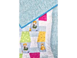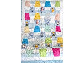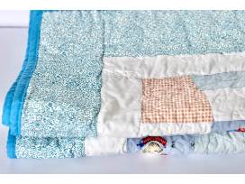 This custom handmade quilt in the tumbler pattern is made from 100% cotton fabric. 48" x 36" with blue/white border and backing. The kittens are adorable and give a vintage feel to the quilt. Perfect for your little one, as a baby/shower gift, or for anyone who loves cats!