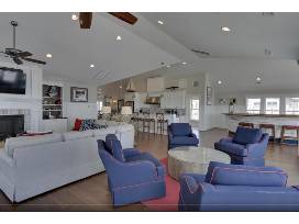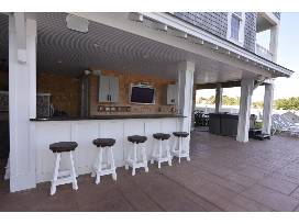 Set sail for a weeklong stay at the oceanfront Crew Quarters, located in Corolla's exclusive Pine Island Club community. Crew Quarters sleeps 40, with 16 bedrooms and 16 baths, plus a private pool, poolside cabana, hot tub, outdoor fireplace, home theater, exercise room, arcade, rec room, and most notably, homeport to the Bar-ge.