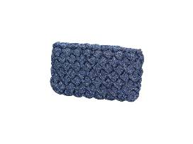 Blue lurex woven clutch. Silk lining, folding frame closure. Designed and hand fabricated in Florence, Italy by artisan Lorenza Gandaglia. Perfect to accompany you to a casual get-together with friends or a night out on the town. Lorenza is a third-generation crocheter who learned the technique from her mother and grandmother. She is known to take the traditional crochet technique and combine it with unique and unusual materials, resulting in beautiful accessories. Each bag, clutch, or tote is made to order and is truly one of a kind. 10"W x 6"H