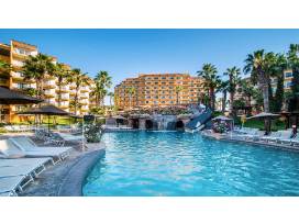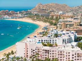 One week (7 nights) in a one bedroom, 2 bathroom condo that accommodates up to 4 people. Condo has fully equipped kitchen and private deck. Villa del Palmar Beach Resort & Spa is a stunning escape for family getaways and romantic couple's retreats. Located on Médano Beach just one mile from downtown Cabo San Lucas, the exquisite resort offers the ultimate in lively entertainment, onsite pools, market, and restaurants. The resort is in walking distance to beach bars and Cabo Marina.
