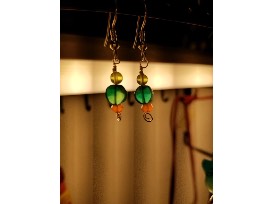 The earrings bring back all 3 stones - peridot, carnelian and of course, green onyx hung on stainless steel wires. Green onyx is said to center your energy and align it with a higher power.